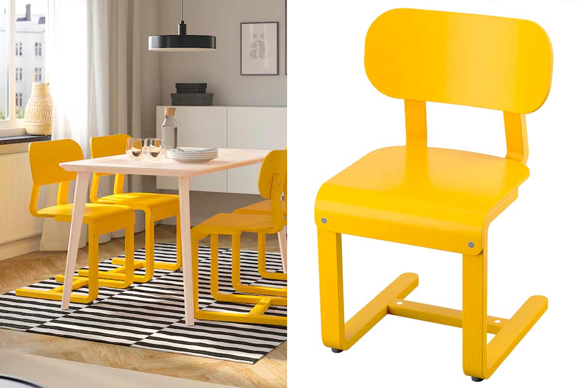 LYCKAN, la nuova sedia IKEA con design a slitta, è pensata per portare energia e stile alla casa grazie al suo colore giallo vivace e alle linee morbide in legno di betulla. Un mix di comfort, estetica e praticità.